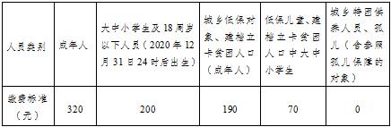 根据省医疗保障局、省财政厅印发的《关于做好2021年城乡居民基本医保和大病保险有关工作的通知》(吉医保联 〔2021〕21号)规定,2021年全省居民医保成年人个人缴费标准为每人每年320元,大中小学生及18周岁以下人员 (2020年12月31日24时后出生)个人缴费标准为每人每年200元。