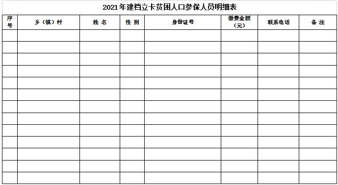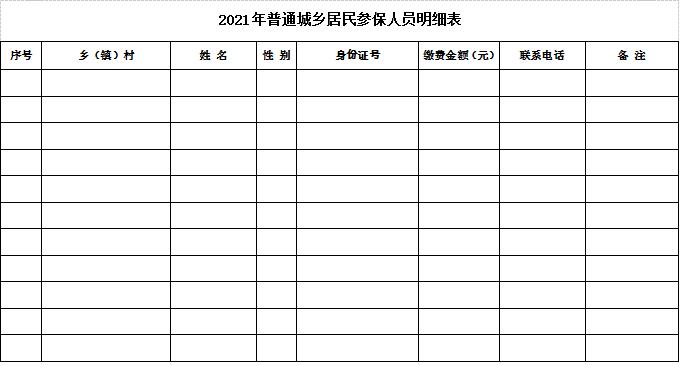 1.参保缴费工作人员要参照《镇赉县2021年城乡居民参保登记表》(见附件3)进行比对,逐村逐户收缴个人参保资金,做到村不漏户、户不漏人,必须以户为单位全员参加。
